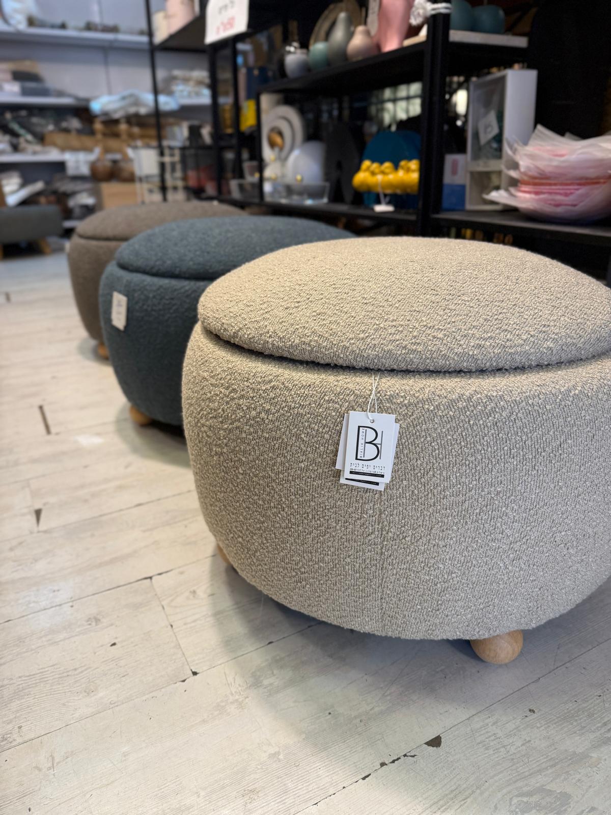 Mellow - הדום ישיבה מעוצב עם אחסון פנימי מרווח – נעים, נוח ורב-שימושי. עשוי מבד מרקם איכותי בגוונים טבעיים ומרגיעים, עם רגלי עץ עדינות ועיצוב עגול שמוסיף חמימות לכל חלל. מושלם לפינת הסלון, חדר השינה או כל פינה בבית שזקוקה לטאץ' רך ושימושי.
