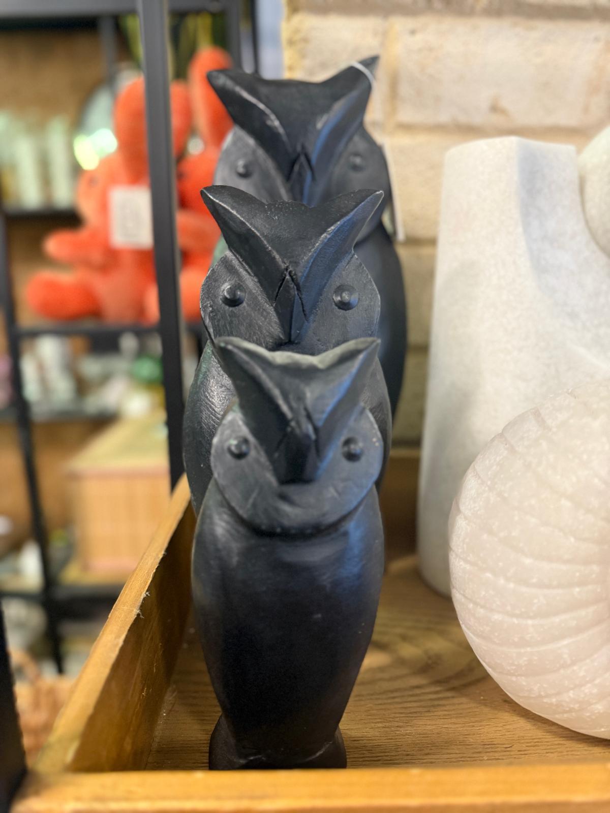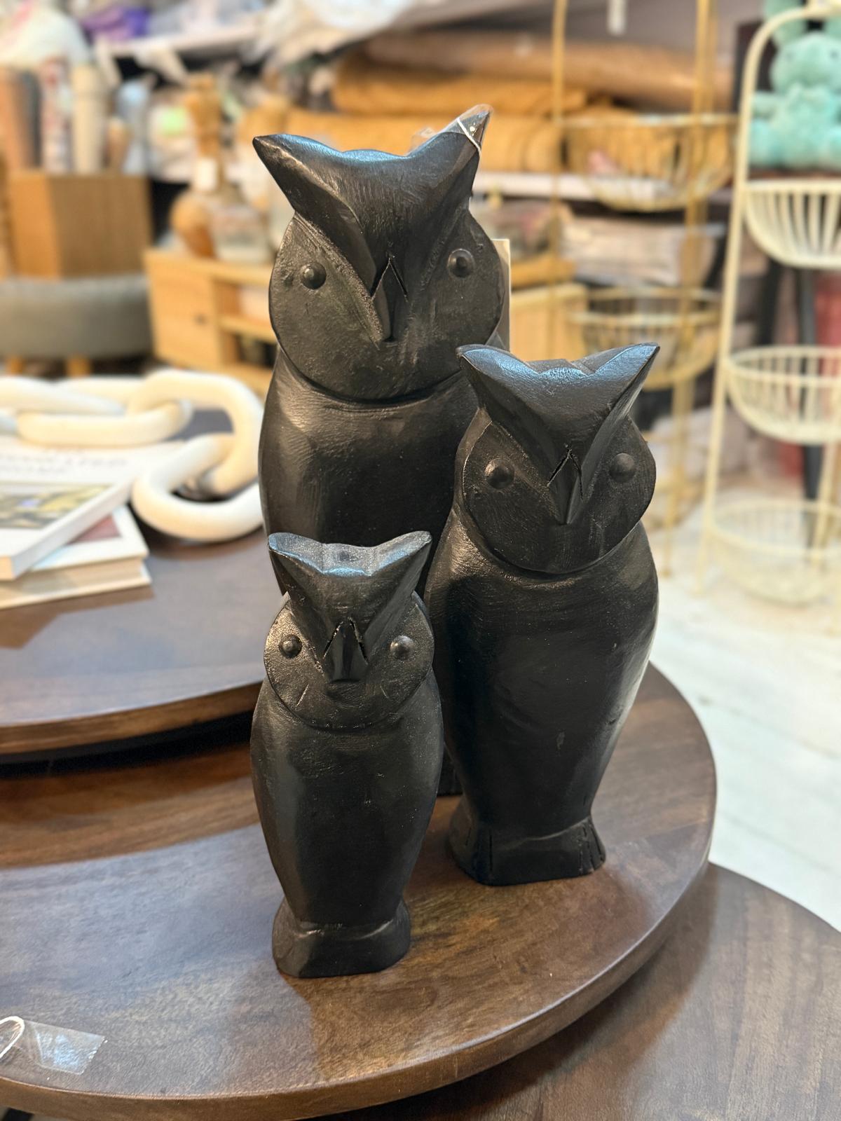 הכניסו קסם, חוכמה וחום לבית עם "משפחת הינשופים" – שלישיית פסלי עץ בגוון כהה, בעיצוב מינימליסטי ואלגנטי. כל ינשוף שונה מעט בגובהו, ויחד הם יוצרים תחושת משפחתיות, איזון והרמוניה.