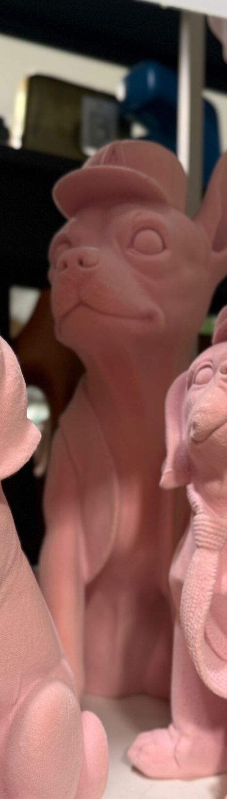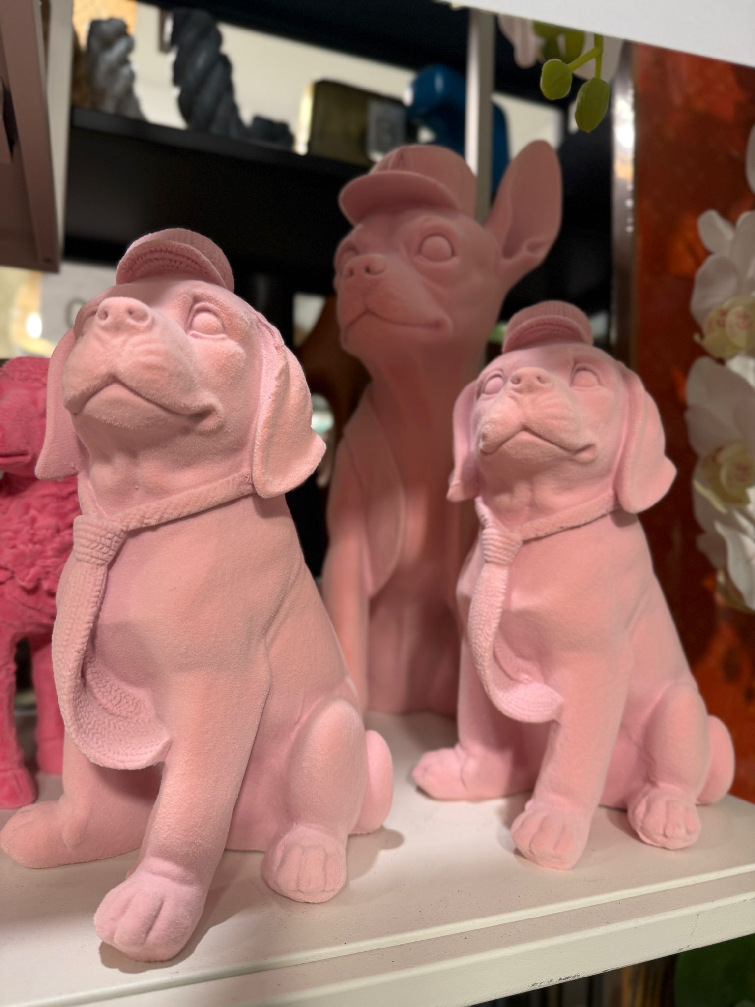 סט בובות בעיצוב גס-מעודן בגוון ורוד חם עם טקסטורה "מחוספסת" המוסיפה עניין ומגע של עבודת יד. כל כלב שונה בקצת – בגודל, בצורה או בעמידה – אבל יחד הם שלישייה עם נוכחות, אופי והרבה שיק.